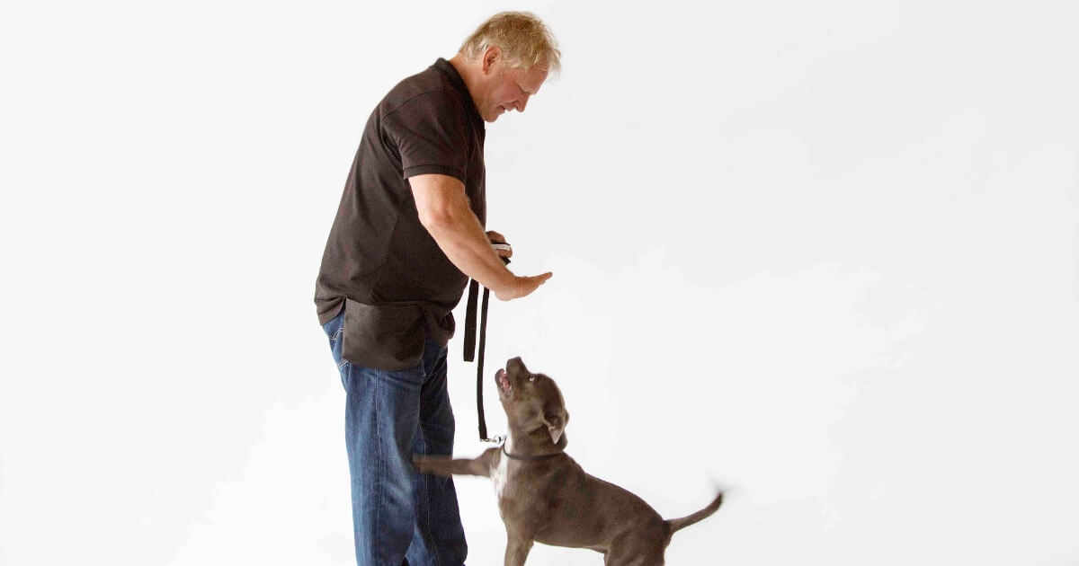 Ideally starting with a young pup, train your dog to keep all four paws on the ground. Use a clicker to mark the behaviour you want as part of this training, it really helps! We have a blog here on how to introduce a clicker if you’ve never used one before.
